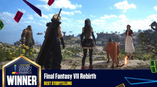 Final Fantasy 7: Rebirth được đề cử cho câu chuyện hay nhất, bao gồm: Dragon 8, Tactical Breach Wizards, Rollelei and Laser Eyes, Famicom Detective Club: Smiley Man Emio và 1000xRESIST.